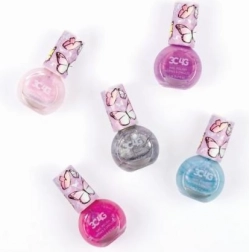 Visezi la unghii fabuloase pentru micuța ta fashionistă? Setul de lacuri de unghii Butterfly este alegerea perfectă! Acest set atractiv include cinci lacuri de unghii încântătoare, fiecare cu un volum de 5 ml. Dintre acestea, trei lacuri sunt special concepute pentru a străluci, cu sclipici în formă de fluturi, aducând un plus de magie fiecărui look.