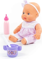 Păpușa Nice cu set pentru hrănire este o alegere excelentă pentru jocurile de îngrijire. Datorită dimensiunii compacte de 24 cm, se ține comod chiar și de către copiii mai mici și poate fi luată ușor oriunde.