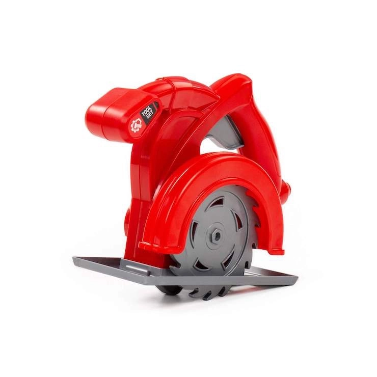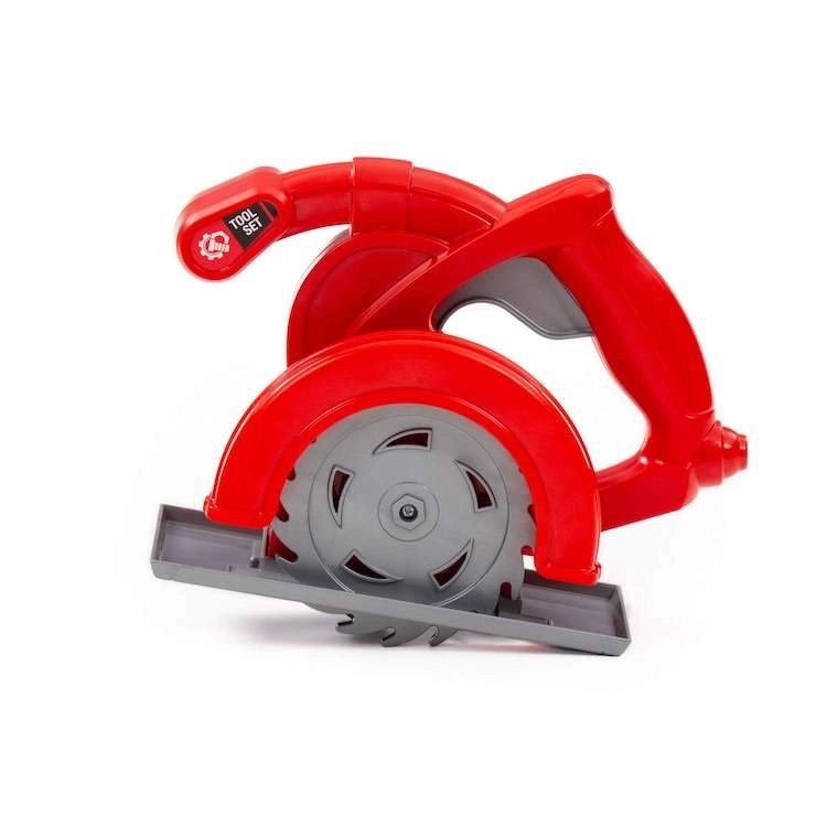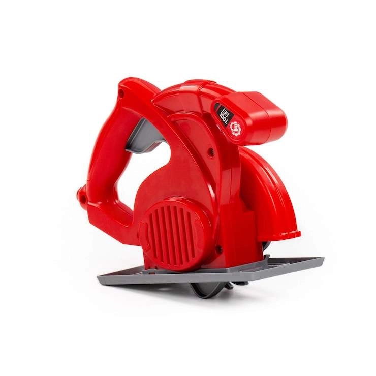 Imită fidel un ferăstrău circular real – inclusiv placa de bază, apărătoarea discului și mânerul ergonomic. Perfect pentru jocuri de rol ale micilor meșteri.