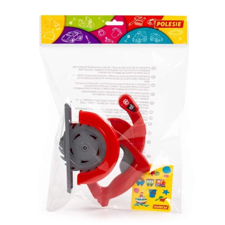 Un ferăstrău circular pentru copii realist, în culoare roșu intens, oferă distracție sigură și joc creativ. La apăsarea manetei, discul se rotește simbolic, astfel încât copiii pot imita munca cu unelte ca adevărații meșteșugari. Accesoriu ideal pentru atelierul copiilor și pentru dezvoltarea imaginației și a motricității.