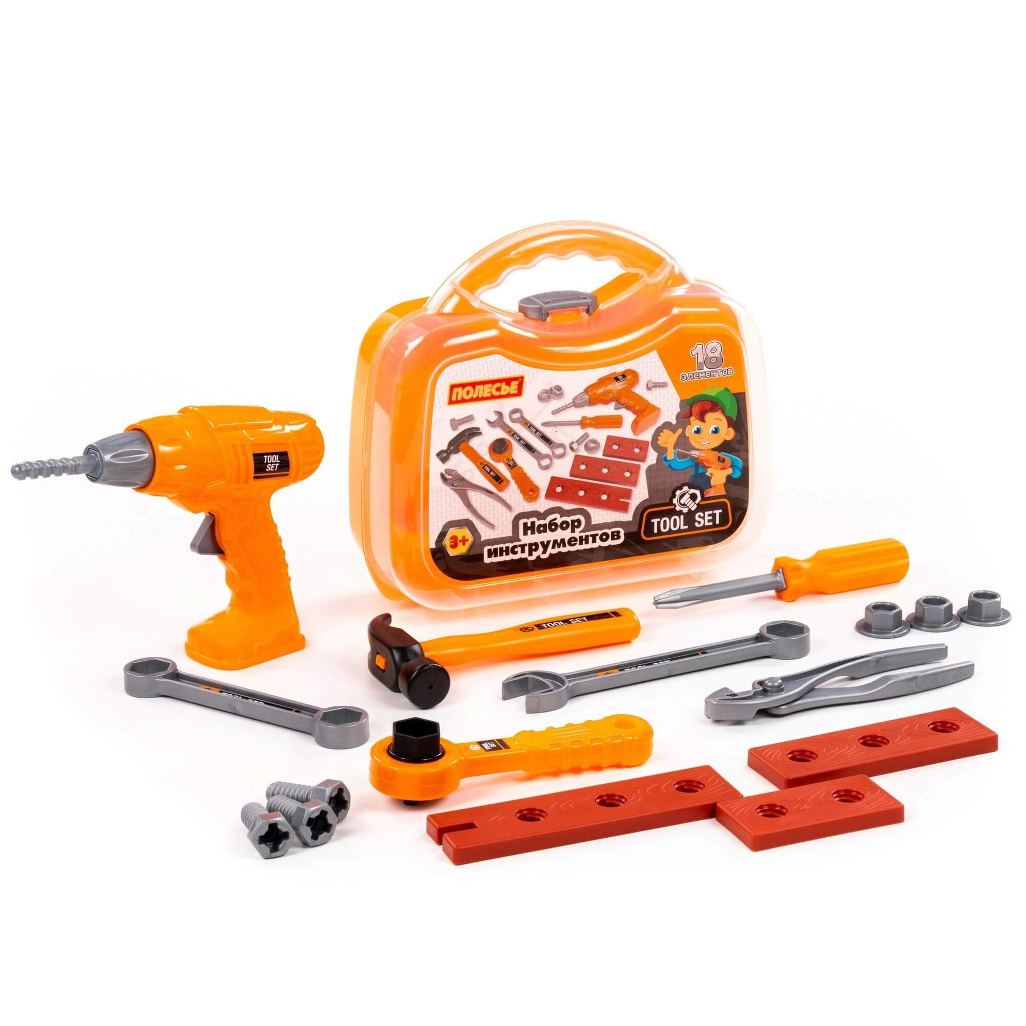 Setul oferă o gamă largă de accesorii pentru scenarii de „reparații” și jocuri de construcție. Datorită valizei portabile, copiii au totul frumos la un loc și pot lua setul oriunde.