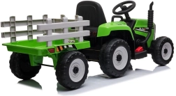 Tractorul electric pentru copii BABY MIX Erick, în culoarea verde, oferă performanță puternică și distracție pentru ore întregi. Datorită motoarelor 2×45 W, bateriei de 12V și remorcii incluse, micul șofer poate transporta jucării și comori. Sunt prezente lumini LED, panou multifuncțional cu efecte sonore, redare MP3 și posibilitatea de a conduce înainte și înapoi cu selectarea vitezei rapide sau lente.