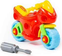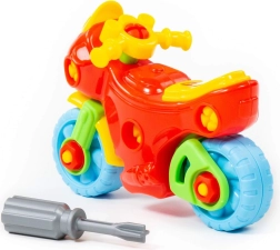 Această motocicletă creativă de înșurubat susține învățarea prin joc: copiii exersează coordonarea mână–ochi, descoperă principiile asamblării și se bucură de multă distracție la montare și demontare. Pachetul include o șurubelniță din plastic adaptată pentru mâini mici și „șuruburi” mari pentru manipulare facilă.
