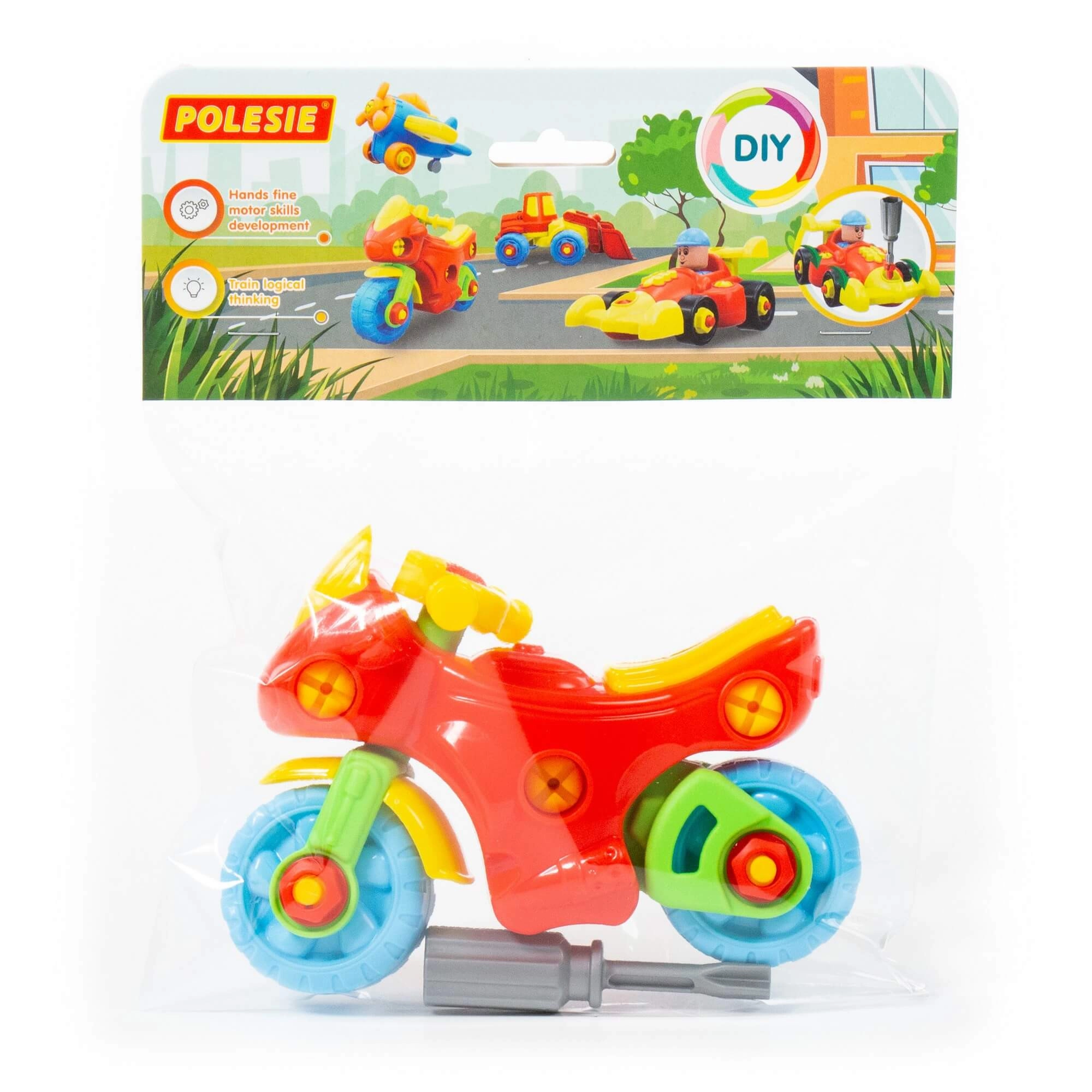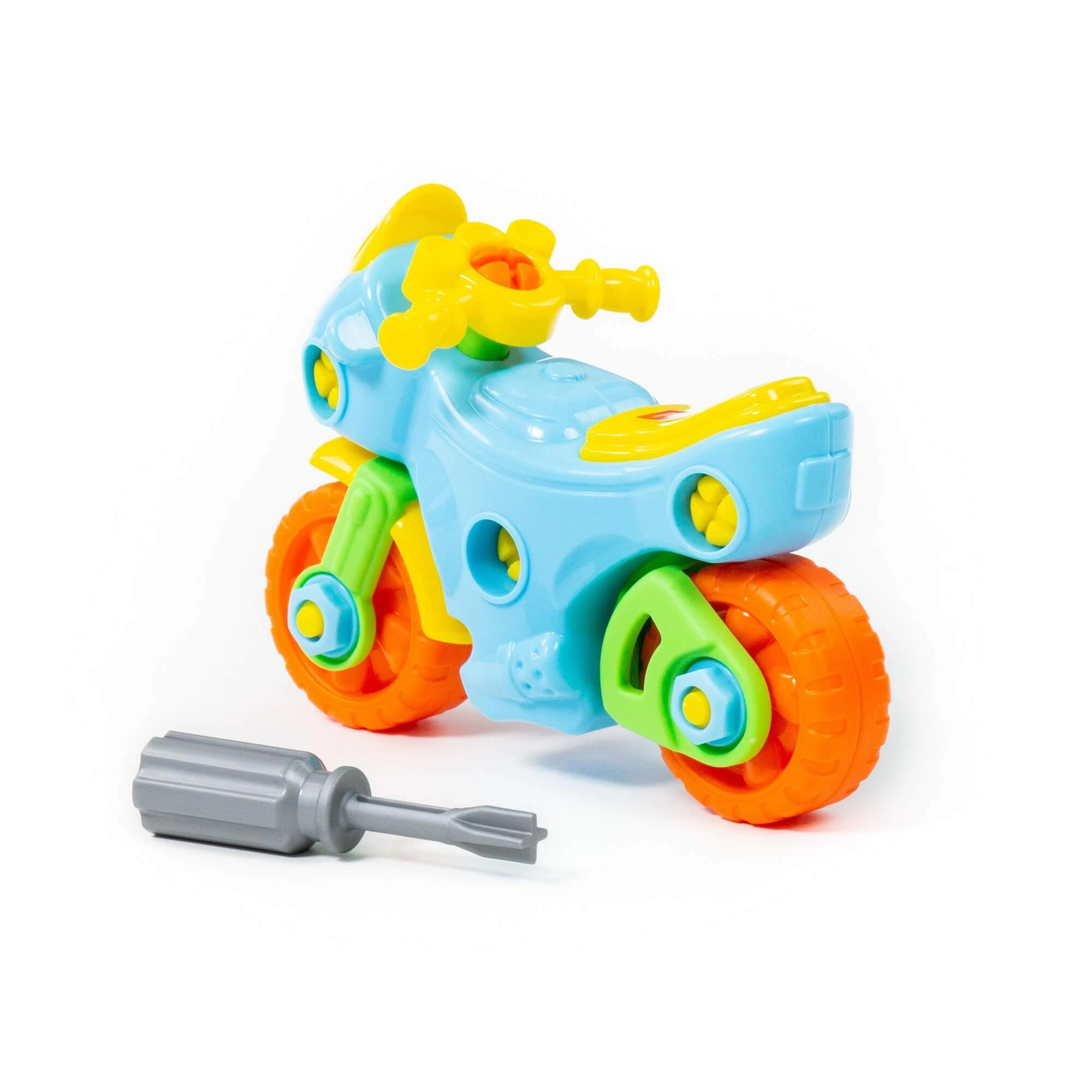 Șuruburile mari și șurubelnița inclusă le permit copiilor să dezasambleze și să reasambleze ușor motocicleta, exersând astfel motricitatea fină și gândirea logică.