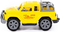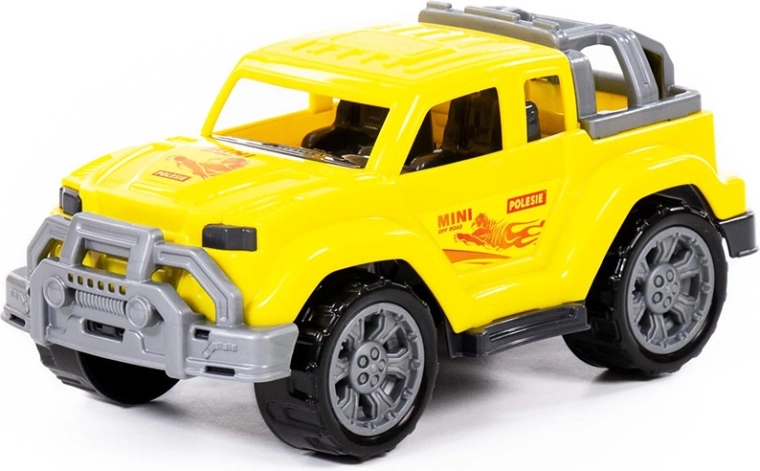 Mașinuța are geamuri deschise, portbagaj pe acoperiș și abțibilduri atrăgătoare care îi subliniază caracterul de teren. Este sigură, ușoară și rezistentă – ideală pentru joaca zilnică. Susține dezvoltarea motricității fine și grosiere, precum și a imaginației.