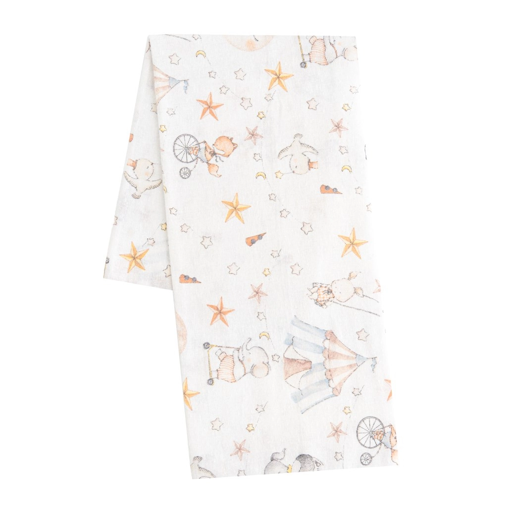 Scutecul din flanel pentru copii NEW BABY Circus este confecționat din 100% bumbac de calitate, moale și respirabil, cu finisaj fin de flanel. Este blând cu pielea sensibilă a nou-născuților, nu provoacă reacții alergice și, datorită absorbției ridicate, este excelent atât pentru schimbat, cât și pentru îngrijirea zilnică a bebelușului.