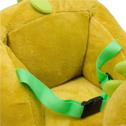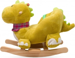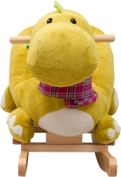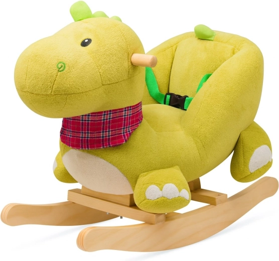 Acest dinozaur balansoar din pluș transformă fiecare joacă într-o aventură sigură. Datorită scaunului confortabil cu spătar și curea de siguranță, copilul stă stabil, în timp ce tălpile din lemn oferă o mișcare lină și calmă. Melodia se activează ușor prin apăsarea butonului, susținând dezvoltarea auzului și a percepției.