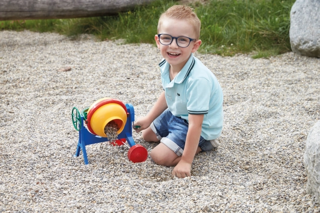 Această betonieră colorată pentru copii reproduce fidel o mașină de construcții reală. Cu ajutorul manivelei laterale, tamburul se rotește ușor pentru a amesteca nisip sau pietricele. Datorită cadrului stabil și marginilor netede, joaca este sigură și distractivă.