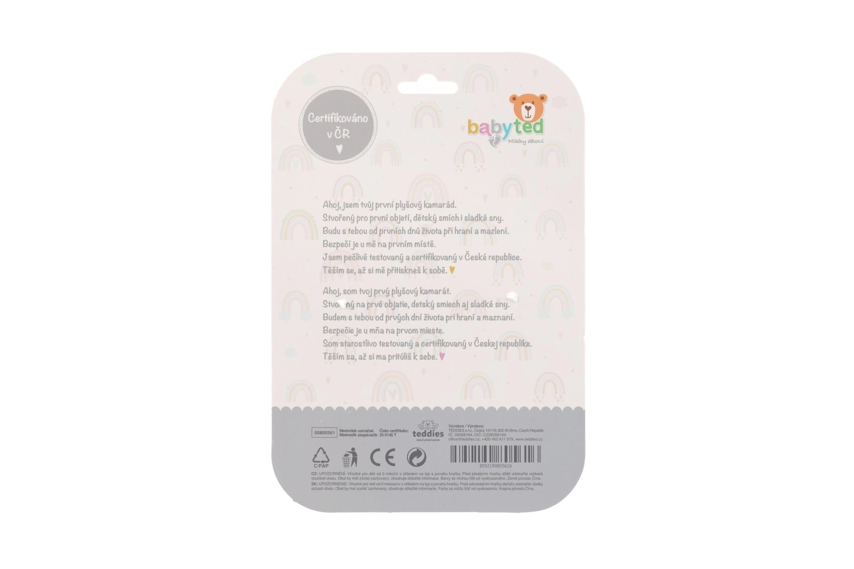 Această păturică de alint din pluș BABYTED este concepută pentru bebeluși încă de la naștere. Materialul minky ultra fin cu puncte reliefate este plăcut la atingere și, prin caracterul său liniștitor, contribuie la un somn mai bun. Zornăitoarea integrată în căpșorul ursulețului sună delicat și atrage în mod natural atenția copilului.