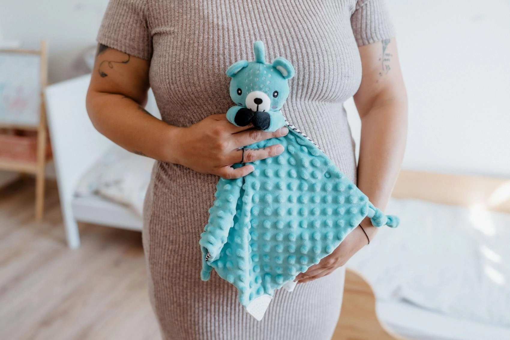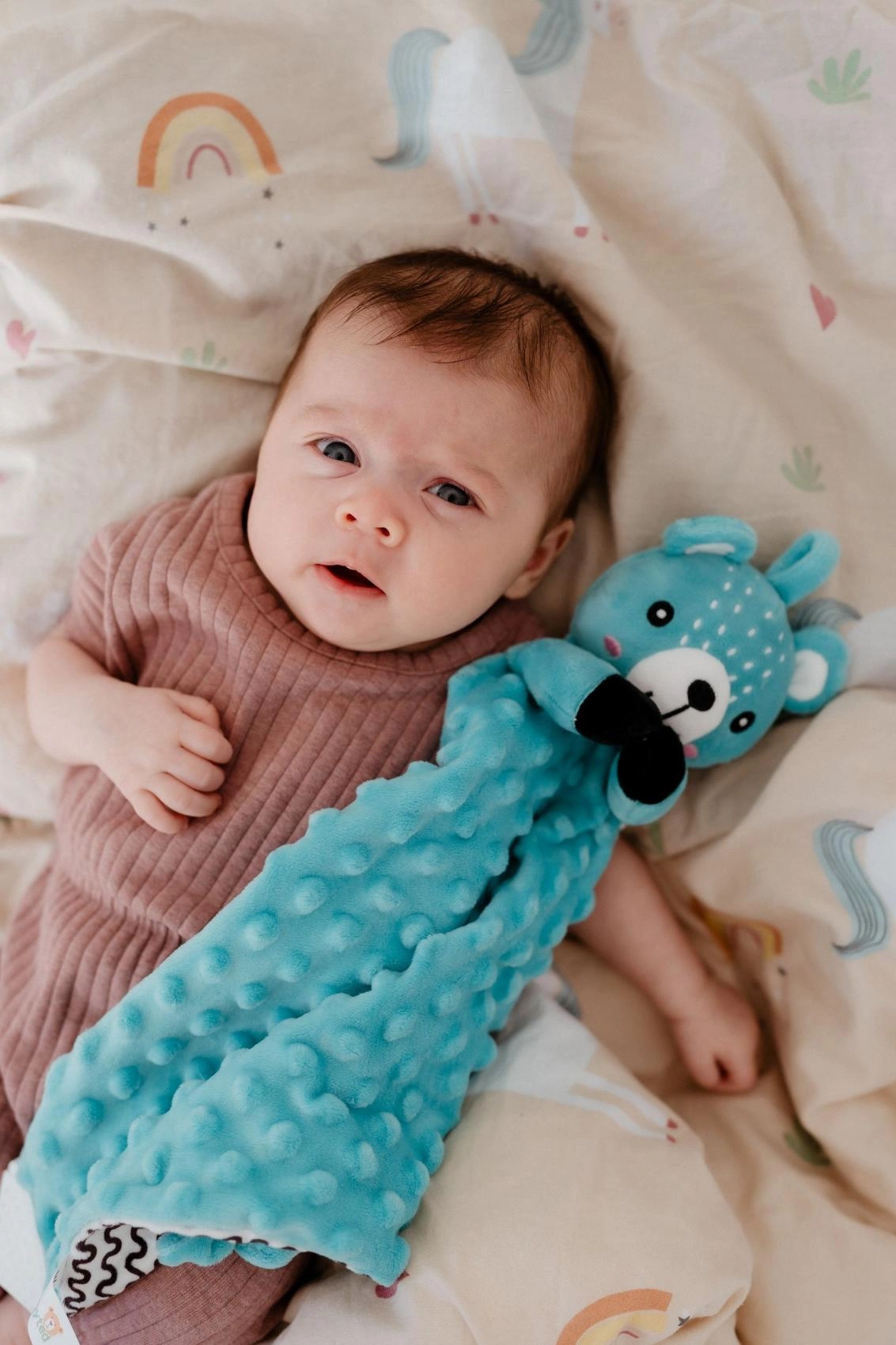 Suprafața deosebit de fină și texturată oferă copiilor o stimulare tactilă plăcută și un sentiment de siguranță la adormire.