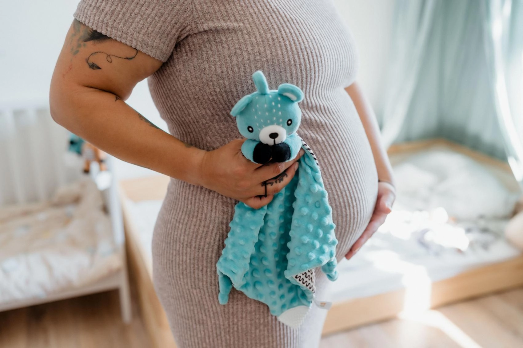 - Material minky moale cu puncte 3D pentru stimulare tactilă