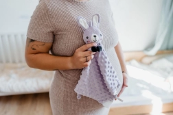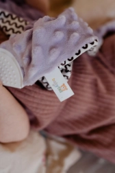 Materialul minky ultra catifelat, cu buline reliefate, oferă bebelușului o stimulare tactilă plăcută și o senzație de siguranță la adormire.