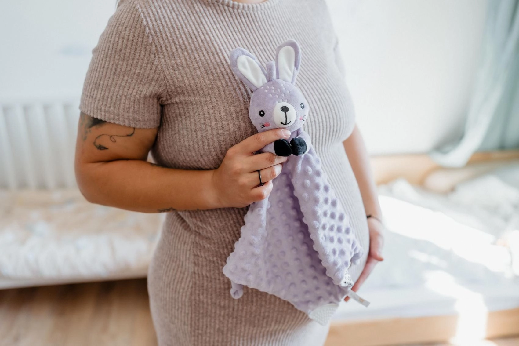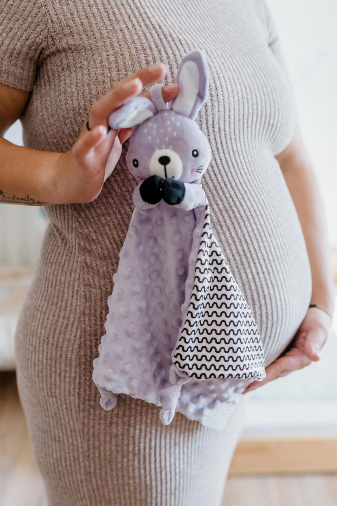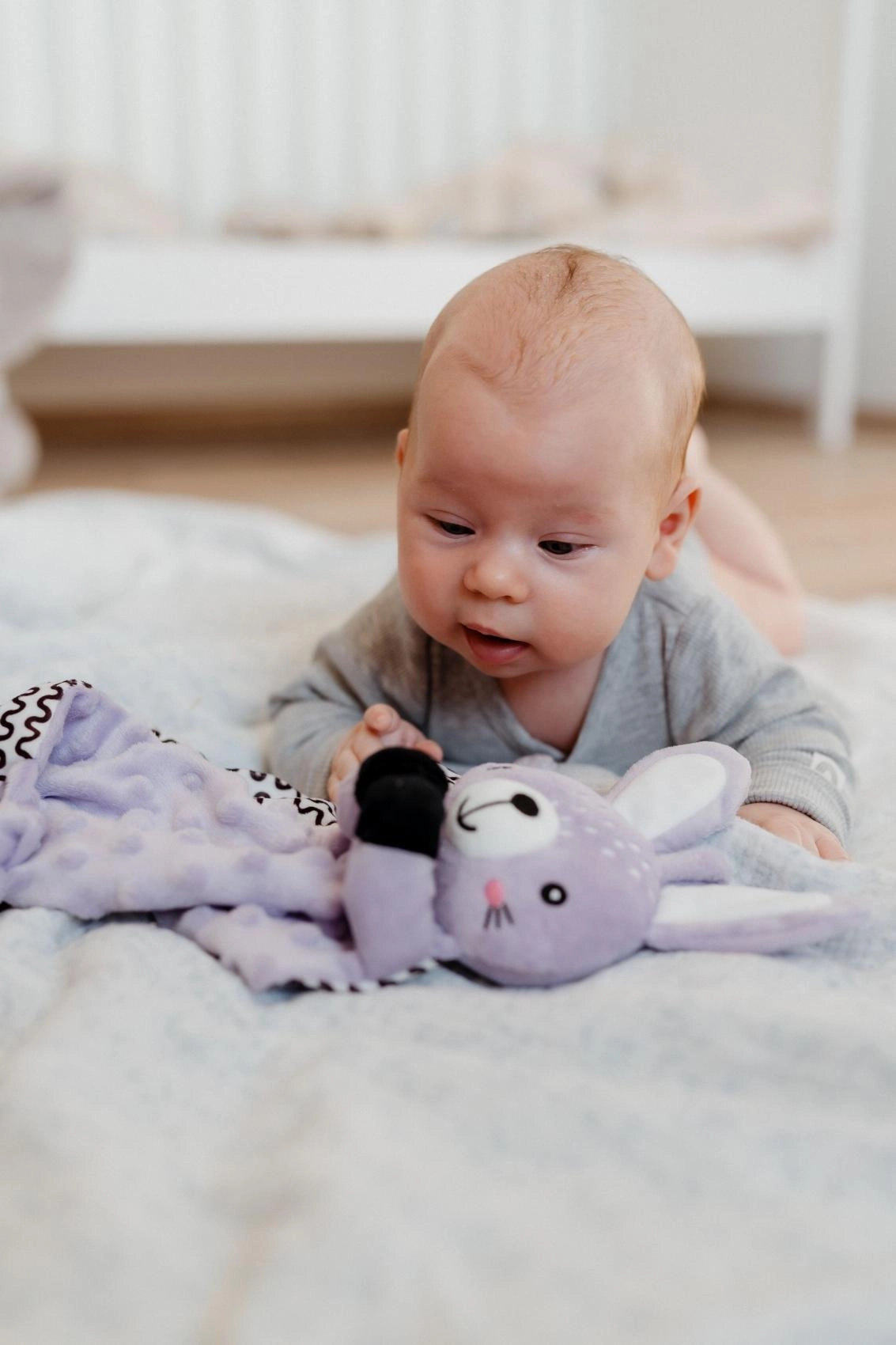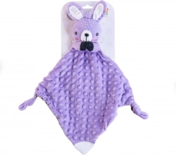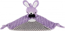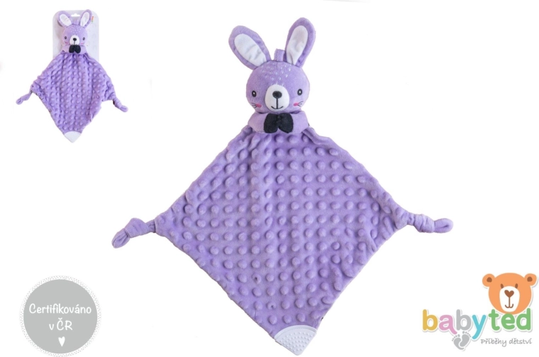 O păturică drăgălașă pentru somn în formă de iepuraș, din material minky moale cu buline 3D, oferă copiilor de la naștere un sentiment de siguranță și calm la adormire. Zornăitoarea delicată integrată susține percepția auditivă, inelul de dentiție din silicon moale alină disconfortul la erupția dinților, iar nodurile din colțuri stimulează dezvoltarea tactilă și permit o prindere ușoară. Certificat în Cehia pentru utilizare sigură de la 0m+.