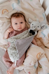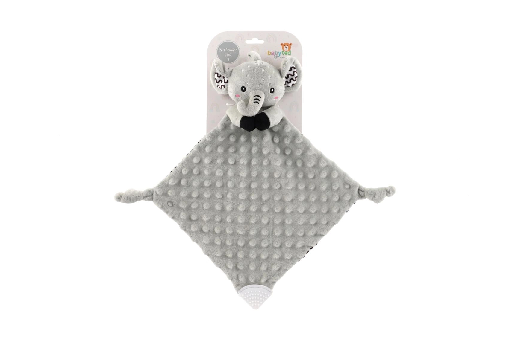Oferiți bebelușului un companion liniștitor pentru fiecare zi. Păturica de alint în formă de elefant BABYTED este realizată din minky deosebit de plăcut, cu o textură 3D pronunțată care stimulează tactil și invită la mângâiere. Datorită construcției ușoare și nodurilor de la colțuri, poate fi prinsă cu ușurință chiar și de cele mai mici mânuțe.