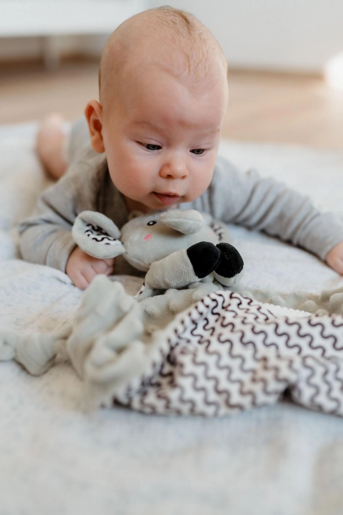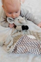 Zornăitoarea integrată sună fin și sprijină dezvoltarea auzului, în timp ce suzeta de dentiție din silicon, moale, aduce alinare gingiilor sensibile în timpul apariției primilor dinți. Păturica este ideală pentru somn, pentru cărucior și pentru călătorii.