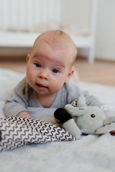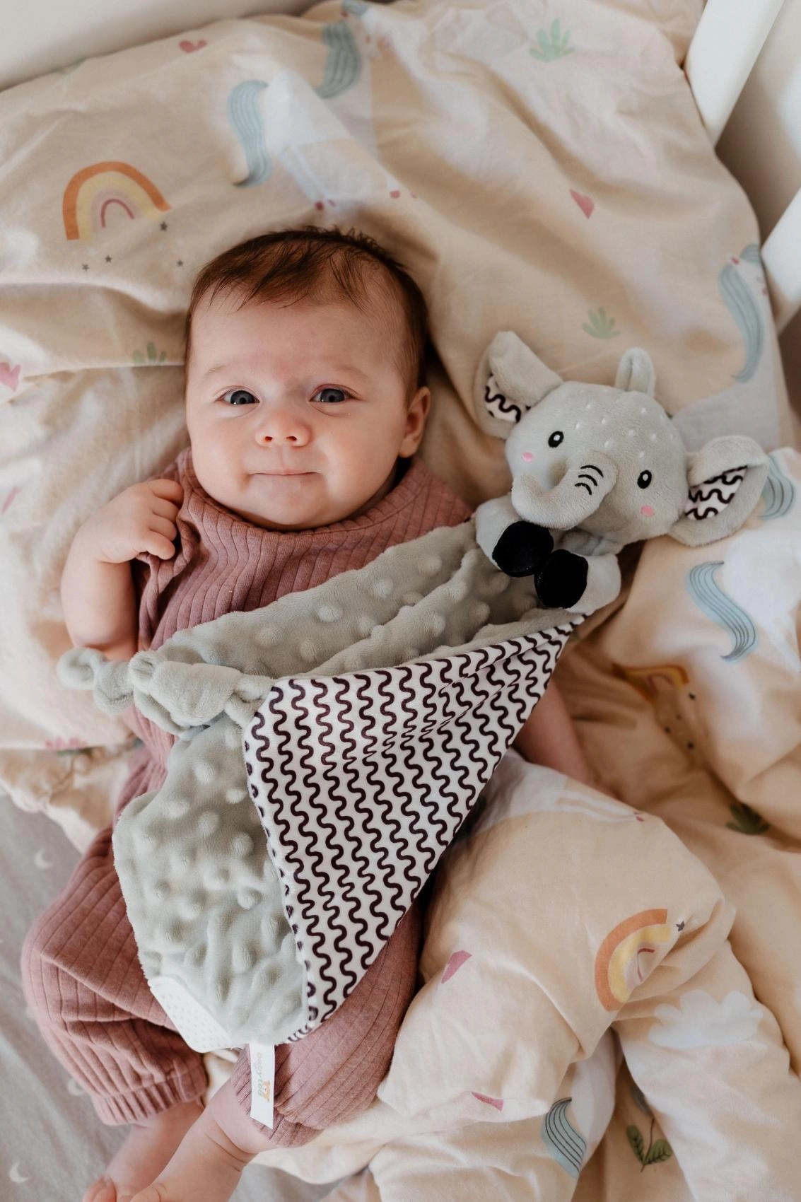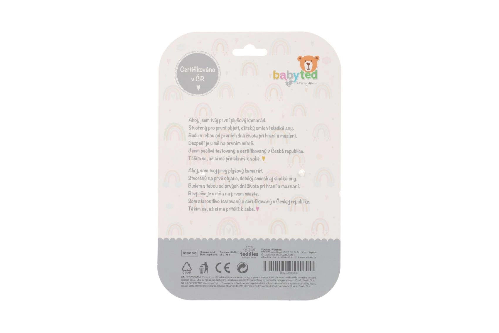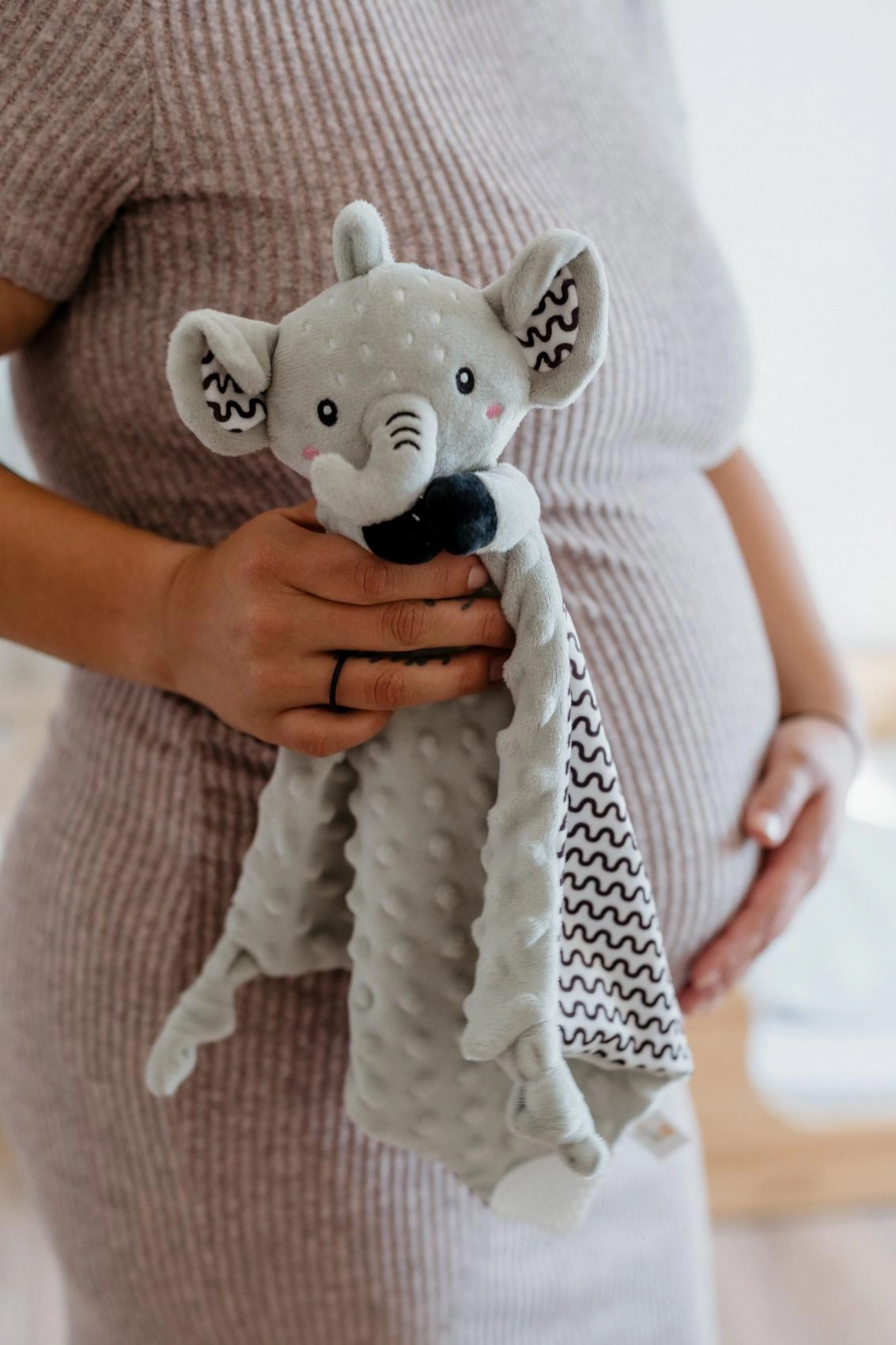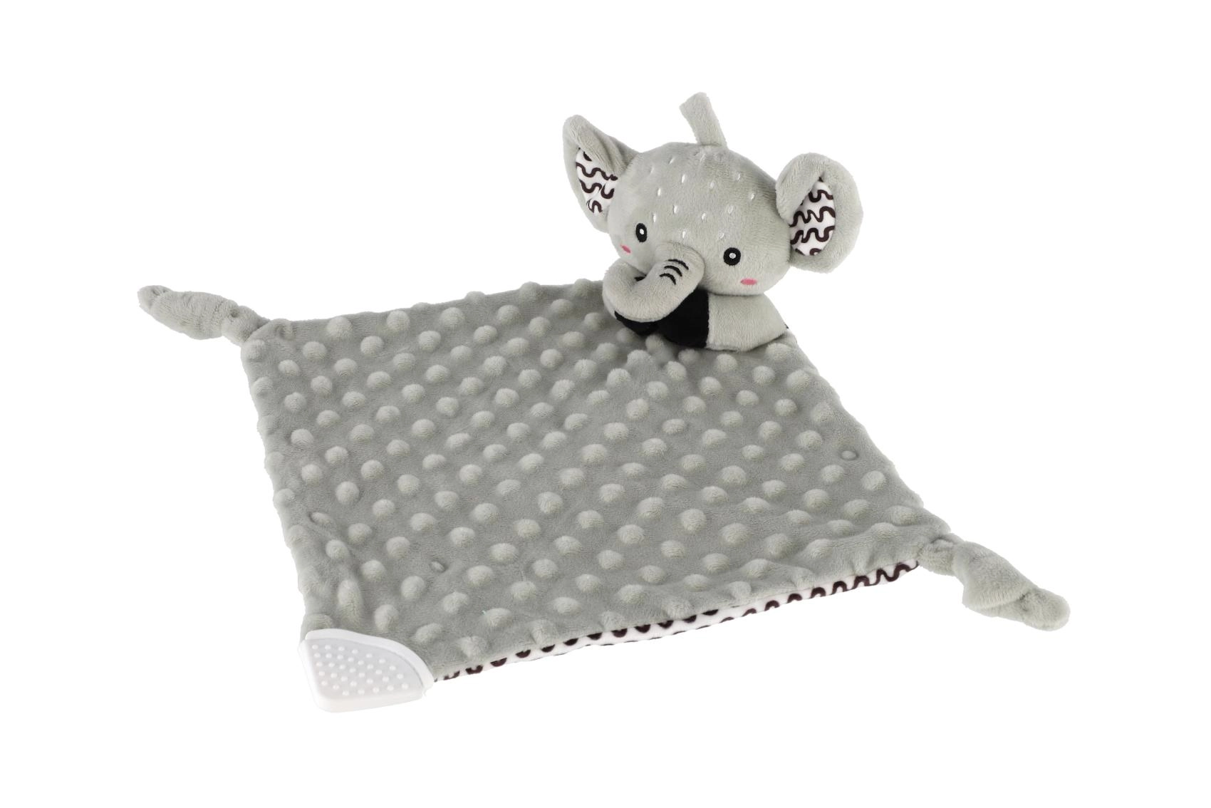 Păturica de alint moale în formă de elefănțel de la BABYTED oferă bebelușului senzație de siguranță și un somn liniștit. Materialul minky foarte moale, cu buline 3D, invită la alint, iar zornăitoarea fină ascunsă dezvoltă auzul. Suzeta de dentiție din silicon, moale, calmează gingiile în perioada erupției dentare. Potrivită de la naștere, certificat în Cehia.