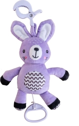 Iepurașul drăgălaș din pluș, cu mecanism muzical pe tragere, este ideal pentru bebeluși încă de la naștere. Doar trageți de inel și jucăria va reda o melodie liniștitoare, care ajută la calmare și adormire. Datorită clipsului practic îl puteți prinde ușor de cărucior, pătuț sau scaunul auto. Plușul moale și catifelat, culorile blânde și modelele contrastante susțin dezvoltarea senzorială, iar urechiușele foșnitoare invită la explorare. Certificat pentru copii de la 0m+.