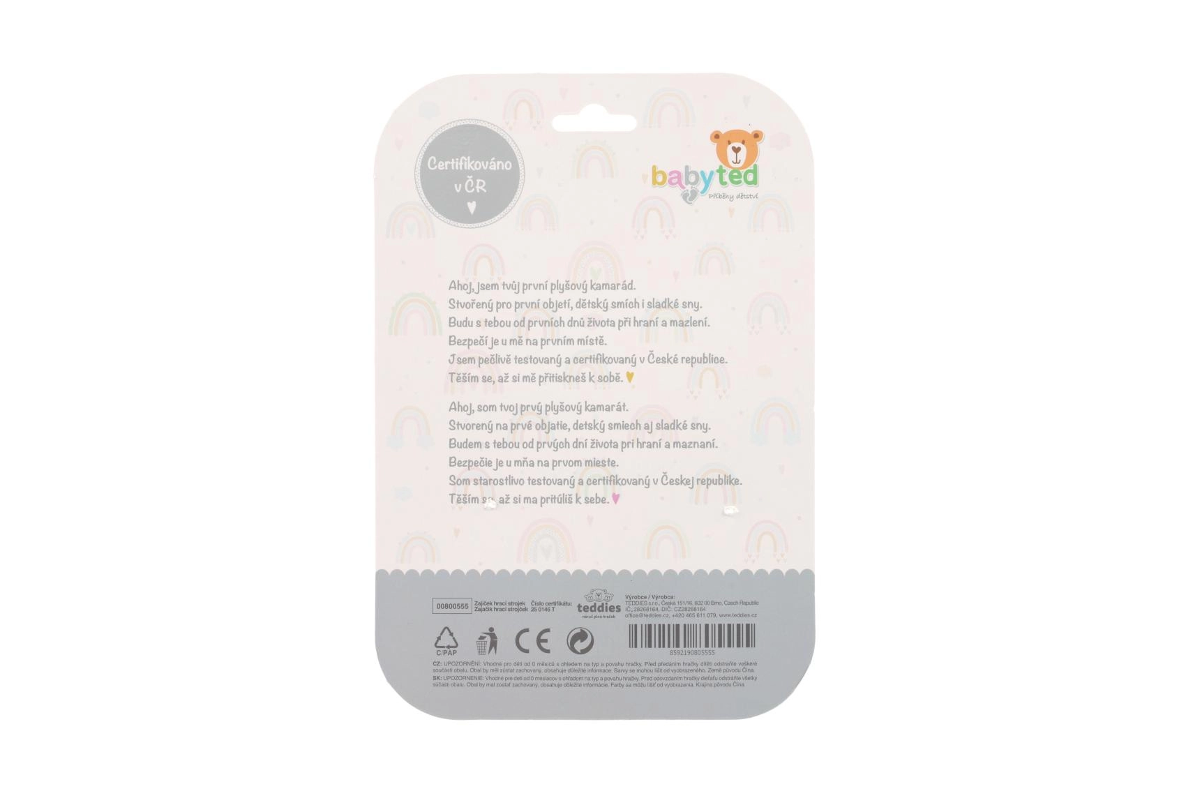 Plușul foarte moale este irezistibil la mângâiat, iar detaliile contrastante și urechiușele care foșnesc sprijină dezvoltarea văzului și a motricității fine. Execuția de calitate și certificarea în Cehia garantează utilizarea sigură încă de la naștere.