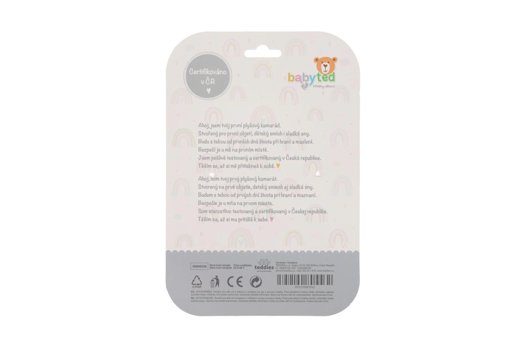 Materialul catifelat este plăcut pentru mânuțele delicate ale copiilor, iar modelele alb-negru de pe urechi și burtică susțin dezvoltarea timpurie a vederii.