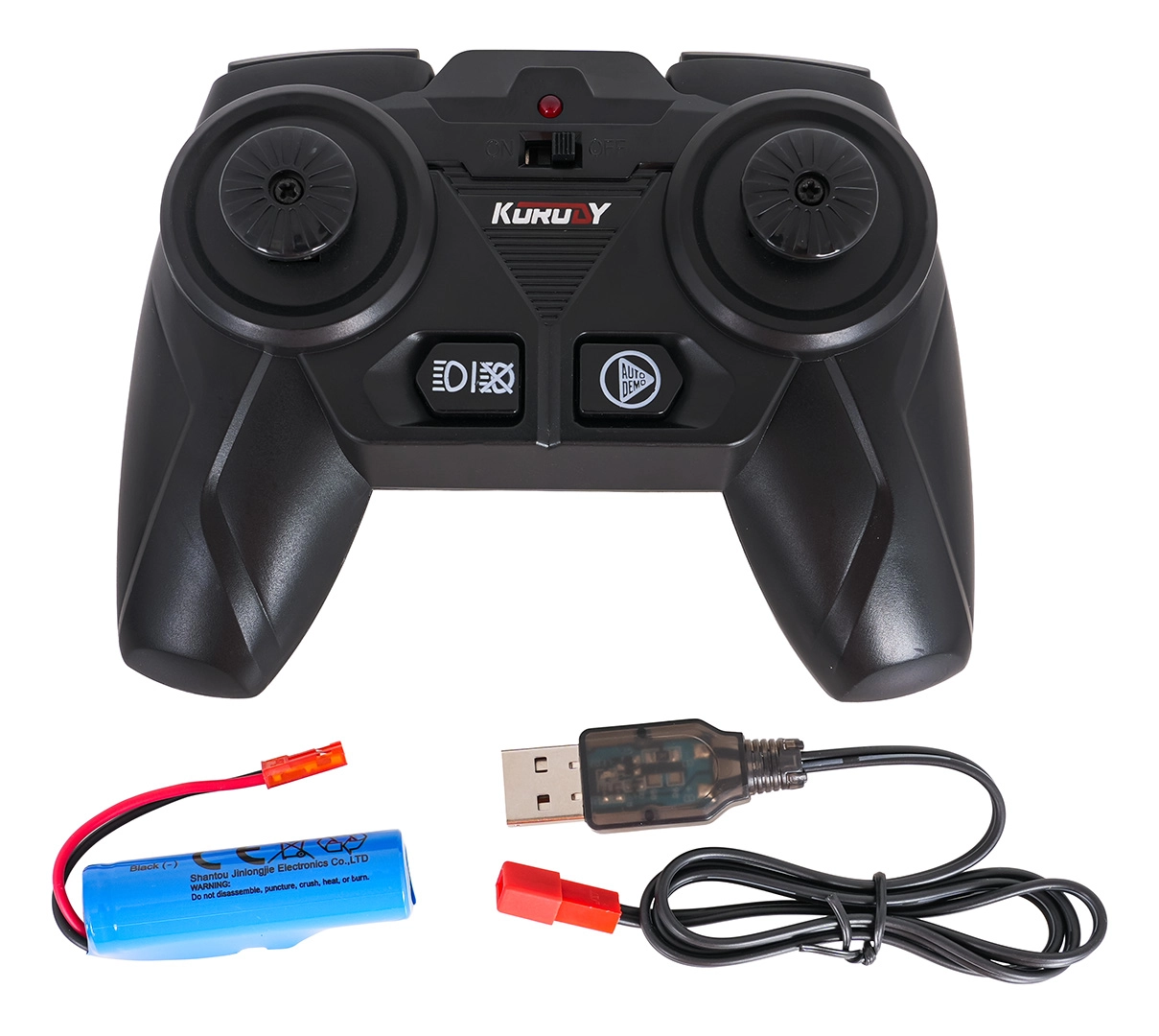 - tractor RC cu încărcător, telecomandă 2,4 GHz, acumulator 3,7 V 500 mAh, cablu de încărcare USB