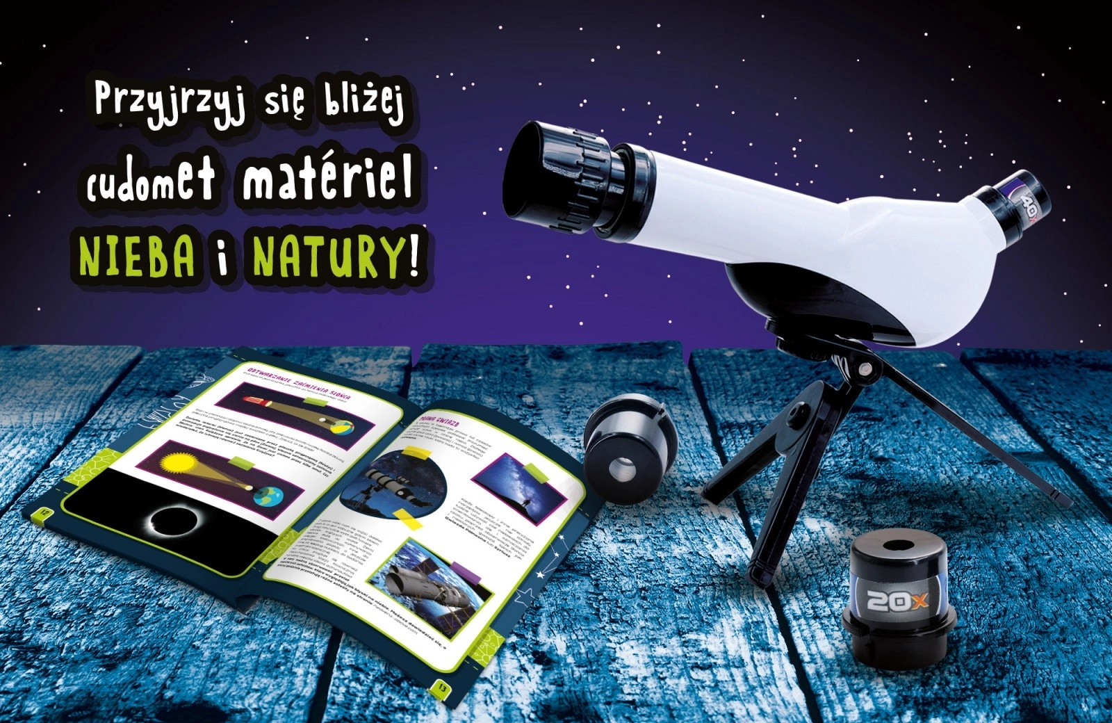 Acest telescop educațional îi motivează pe copii să descopere stelele, Luna și fenomenele diurne de pe cer. Operarea simplă și lentilele interschimbabile asigură o imagine clară și adaptarea la diferite tipuri de observații. Instrucțiunile incluse ajută la recunoașterea constelațiilor și la efectuarea în siguranță a primelor experimente astronomice.