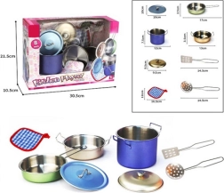 Setul de bucătărie metalic realist pentru micii bucătari, cu 8 piese, oferă vase metalice durabile, margini rotunjite sigure și design atrăgător. Perfect pentru jocul de-a bucătăria, restaurantul sau magazinul, dezvoltă imaginația, creativitatea și motricitatea fină și este un cadou ideal datorită ambalajului atractiv.