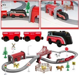 Acest trenuleț electric WOOPIE aduce copiilor de la 3 ani ore întregi de distracție creativă. Datorită cuplajelor magnetice, vagoanele se conectează ușor și sigur, locomotiva pe baterie AAA oferă o mișcare realistă, iar traseul cu pod și tunel creează o scenografie atractivă de fermă.
