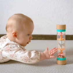 Zornăitoarele transparente „ploaie” cu biluțe oferă un sunet liniștitor și un efect vizual, în timp ce cuburile moi și ușoare cu clopoței susțin motricitatea fină și manipularea în siguranță.
