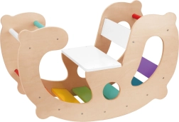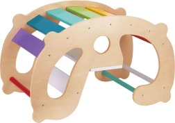 Acest element de joc universal, inspirat de metodologia Montessori, susține motricitatea grosieră, coordonația și încrederea în sine a copiilor. Cei mici pot să se cațere, să treacă peste, să se legene sau să se odihnească – o singură piesă oferă multe moduri de joc și mișcare. Lemnul natural, combinat cu culori vii, creează un mediu atractiv care stimulează joaca activă și creativitatea.