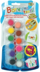 Conținutul setului: 12 recipiente cu vopsele: roșu, galben, verde deschis, albastru, violet, negru, maro deschis, maro închis, portocaliu, roz, verde închis, alb.