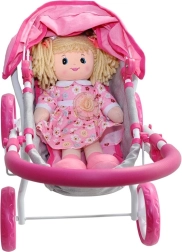 Capotina pliabilă protejează păpușa de soare, iar în landou se află o salteluță moale pentru confort. Roțile din spumă reduc zgomotul și asigură o mișcare lină, în timp ce mânerul căptușit este plăcut la atingere. Căruciorul se pliază plat pentru depozitare și transport ușor.