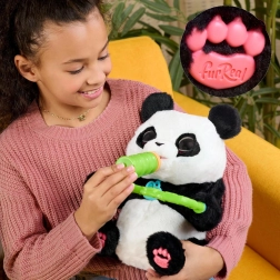 Adorabila panda interactivă FURREAL Coco, cu înălțimea de 27 cm, oferă peste 60 de sunete și mișcări pentru distracție nesfârșită. Iubește rostogolirile, salturile și chicotelile, reacționează la atingerea capului și a lăbuțelor, iar datorită sticluței și gustării din bambus vă puteți bucura și de joaca de-a hrănitul. Blăniță pufoasă, ochi mari albaștri și modul liniștitor de alint o fac prietenul perfect pentru copiii de la 4 ani în sus.