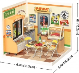 Construiește-ți propria miniatură a unui bistro urban inspirat de tarabele nocturne din Asia. Această căsuță DIY detaliată de la Robotime Rolife oferă 120 de piese, echipare realistă și iluminare LED pentru o atmosferă captivantă. Bucură-te de asamblare ușoară cu nivel de dificultate 1/5 și aproximativ 1 oră de distracție.