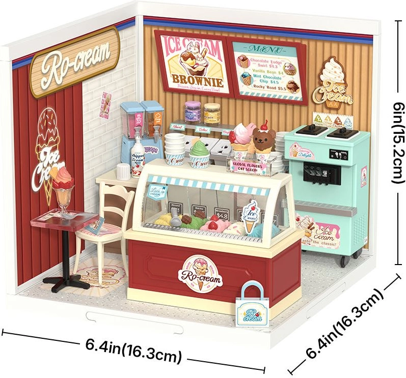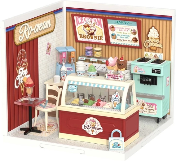 Construiește-ți propria gelaterie retro cu detalii pastelate delicate și iluminare LED funcțională. Acest set miniatural DIY de la ROLIFE oferă asamblare rapidă cu nivel redus de dificultate, decorațiuni distractive și elemente realiste – de la tejghea cu tăvi până la mașina de înghețată la dozator. Ideal ca cadou și decorațiune stilată pentru interior.