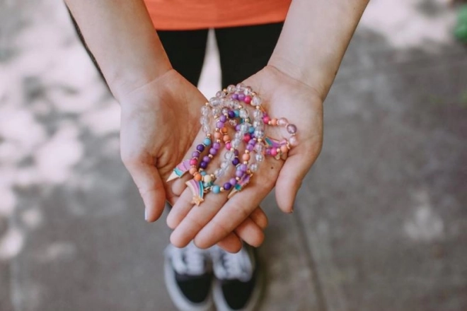 Intrați în lumea creativității și creați-vă brățări unice pe care nimeni altcineva nu le are. Cu acest set, puteți împreună cu prietenele voastre să creați bijuterii frumoase care vor cuceri pe toți cei din jur. Tot ce aveți nevoie este deja inclus.