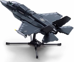 Construiește un model detaliat al modernului avion de vânătoare F-35B Lightning II la scară 1:44 din 705 piese din plastic ABS rezistent. Setul oferă părți mobile (aripi, ampenaj orizontal, tren de aterizare), cockpit transparent cu loc pentru pilot, suporturi pentru armament și stand pentru expunere. Include minifigurină originală de pilot și compatibilitate cu alte seturi de construcție.