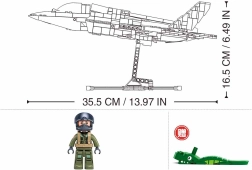 Setul include o minifigurină originală de pilot, suporturi cu armament simulat (rachete și bombe) și un stand asamblabil pentru o prezentare efectuoasă. Plasticul ABS de calitate asigură rezistență, stabilitate și durabilitate. Setul este compatibil cu produsele altor producători. Susține dezvoltarea motricității fine, creativității și răbdării.