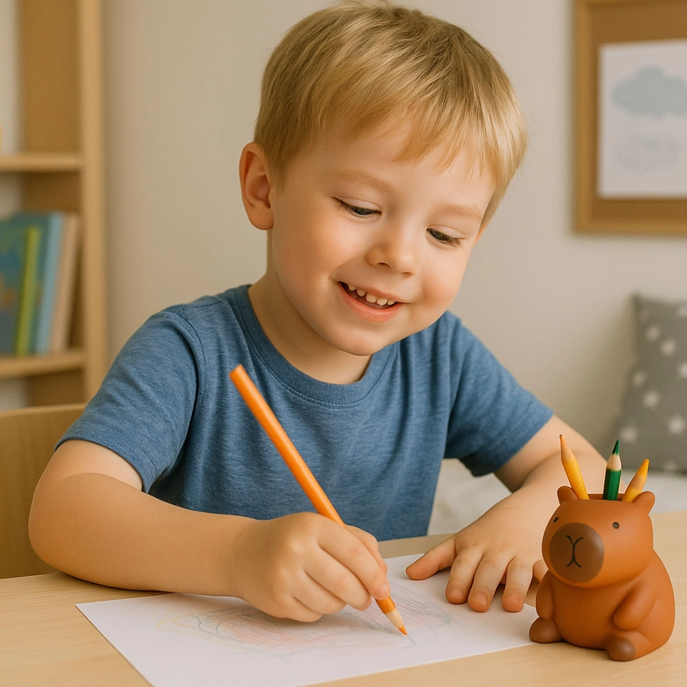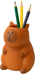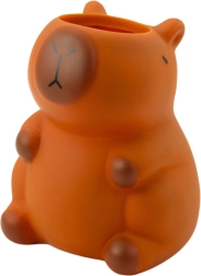 Acest organizator decorativ în formă de capibara este realizat din material decorativ de calitate, cu suprafață mată și o nuanță caldă de maro. Datorită liniilor rotunjite, are un aspect primitor și se potrivește perfect atât în interioare moderne, cât și în cele cozy. Orificiul/stâlpul superior permite depozitarea ordonată a instrumentelor de scris, pensulelor sau mărunțișurilor.