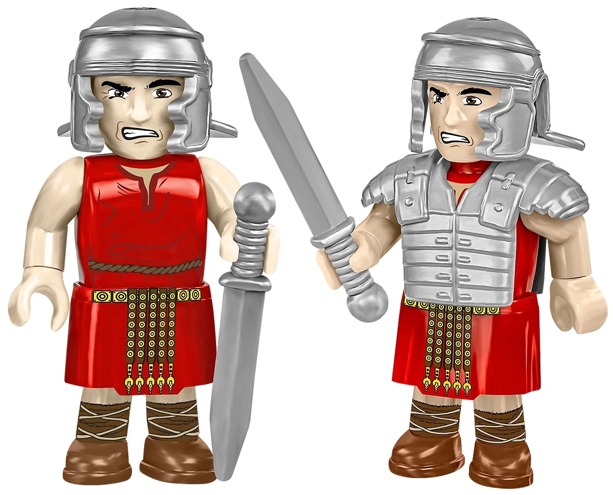 Lasă legionarul cu scutul scutum și sabia gladius să apere tabăra împotriva războinicilor înarmați. Accesoriile detașabile și imprimeurile susțin varietatea în joc.