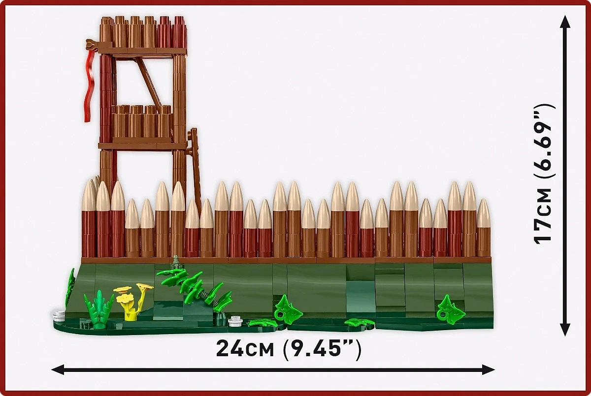 Construiește un turn de lemn cu țăruși de palisadă, scări și scărițe. Construcția modulară permite conectarea ușoară a altor părți ale taberei și crearea de scene istorice.