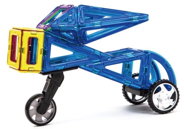 Piesa suplimentară rotiță pentru motocicletă pentru setul MAGFORMERS extinde gama de roți pentru crearea unor modele originale. Elementul este conceput pentru prindere rapidă și ușoară în pătratul MAGFORMERS, astfel încât copiii pot construi imediat noi variante de vehicule cu o singură urmă și tricicluri.