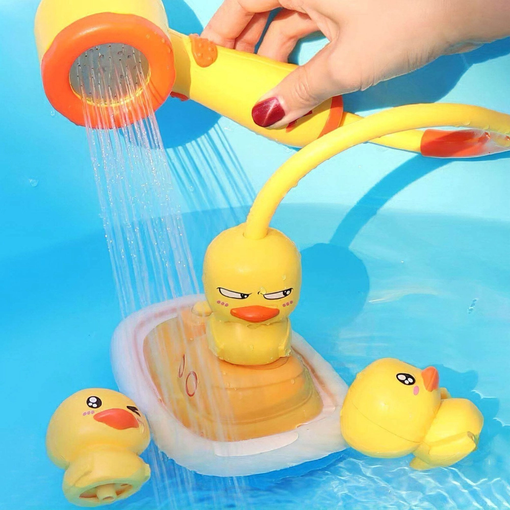 Jucăria de baie cu rățuște și duș oferă copiilor distracție acvatică variată. Pompa integrată pe baterii asigură un flux lin de apă, astfel încât cei mici se bucură de o experiență realistă de duș fără manipulare complicată. Capetele interschimbabile ale rățuștelor, cu expresii diferite, adaugă creativitate jocului și stimulează imaginația.