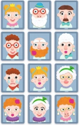 Diverse coafuri, ochelari și bărbi stimulează imaginația, antrenează prinderea și coordonarea mână–ochi în timpul poziționării precise a pieselor.