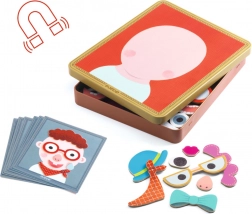 Setul magnetic INZEBOX de la DJECO transformă alcătuirea fețelor într-un joc distractiv. Copiii pot combina liber ochi, nasuri, guri, păr sau bărbi și pot crea în câteva clipe personaje cu expresii variate. Totul aderă pe cutia metalică, care servește ca suprafață de joc și depozitare practică.