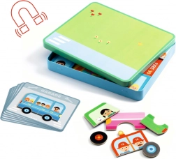 Set de construcție magnetic, compact, cu care copiii își pot asambla în câteva clipe propriile mașini, camioane și utilaje direct pe cutia metalică. Ideal pentru călătorii, dezvoltă motricitatea fină, creativitatea și imaginația – totul organizat într-o cutie practică.