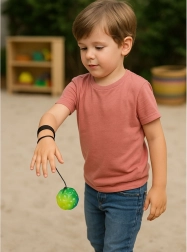 Brățara elastică reglabilă pentru încheietură se adaptează majorității mâinilor și oferă purtare confortabilă și sigură. Produsul este excelent pentru copii, adolescenți și adulți – ca supliment de antrenament, pentru exerciții la școală sau acasă, ori ca activitate distractivă în curte și pe teren. Culoarea mingii este mereu vie și se alege aleator.