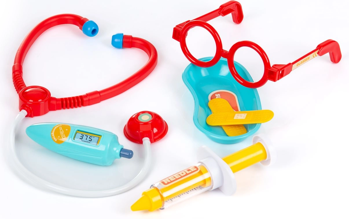 Stetoscop, termometru, seringă, foarfecă și alte accesorii îi inspiră pe copii la jocuri creative și la învățarea unor proceduri de bază din mediul medical.