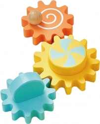 Mărgelele colorate pe fire solide îl îndeamnă pe copil să exerseze prinderea, precizia și coordonarea mână–ochi. Mișcarea lină și culorile atrăgătoare invită la joacă repetată.