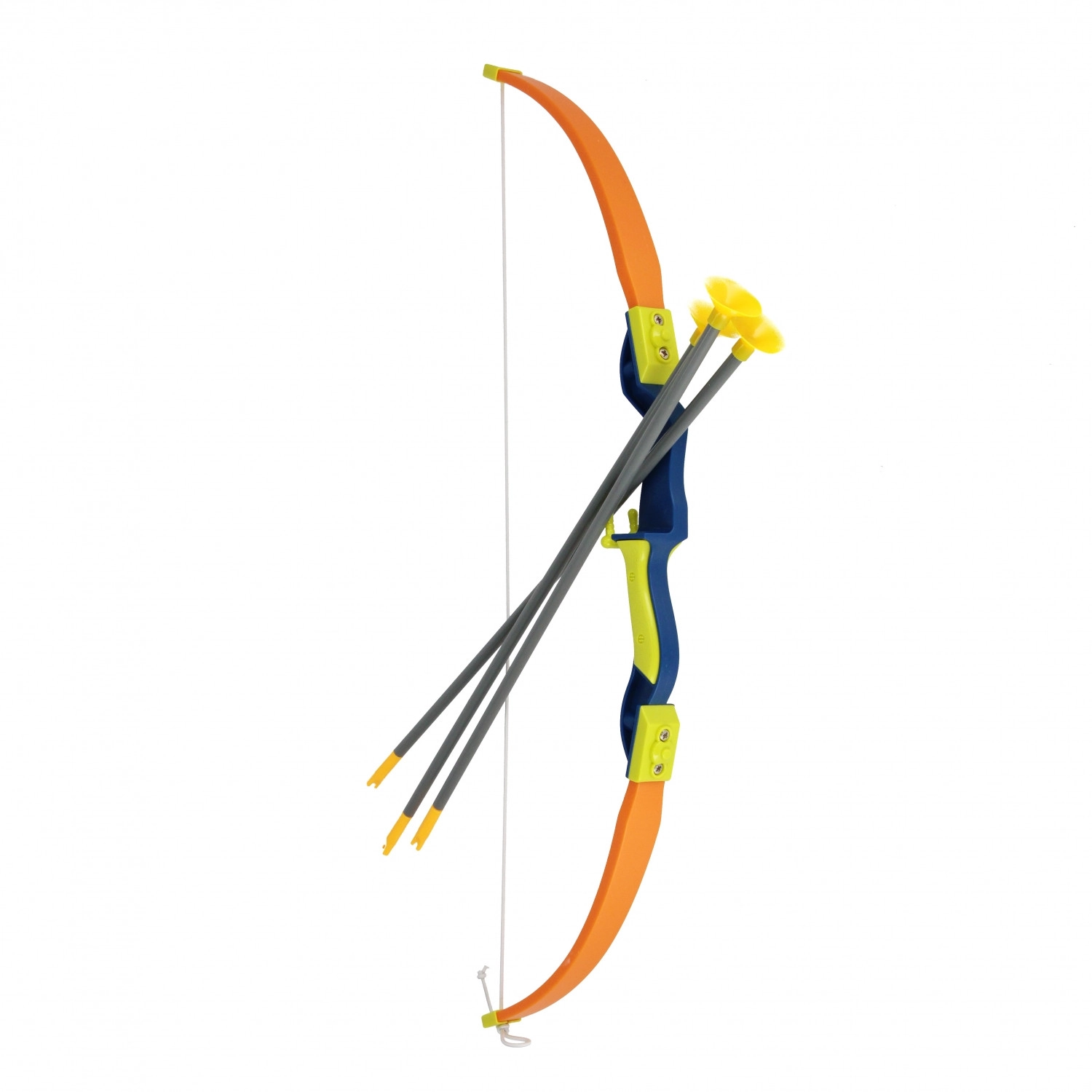 Set distractiv pentru micii arcari, care include un arc pentru copii și 3 săgeți sigure. Ideal pentru joacă acasă și în aer liber, cu dimensiuni compacte 58 × 17 cm și manipulare ușoară pentru copii de la 3 ani.