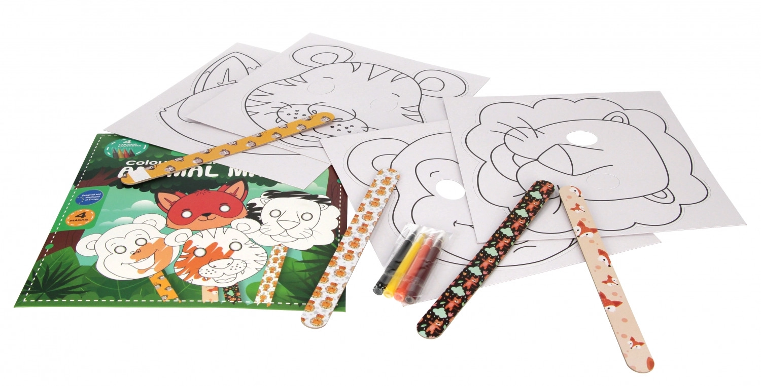 Set distractiv de măști de animale pentru micii creatori, oferă tot ce ai nevoie pentru a realiza propriile măști. Conține 4 șabloane, 4 bețișoare de ținere și 4 markere – ideal pentru creații, carnaval și petreceri pentru copii. Ușor de folosit, dezvoltă creativitatea și este sigur pentru copiii de la 3 ani.
